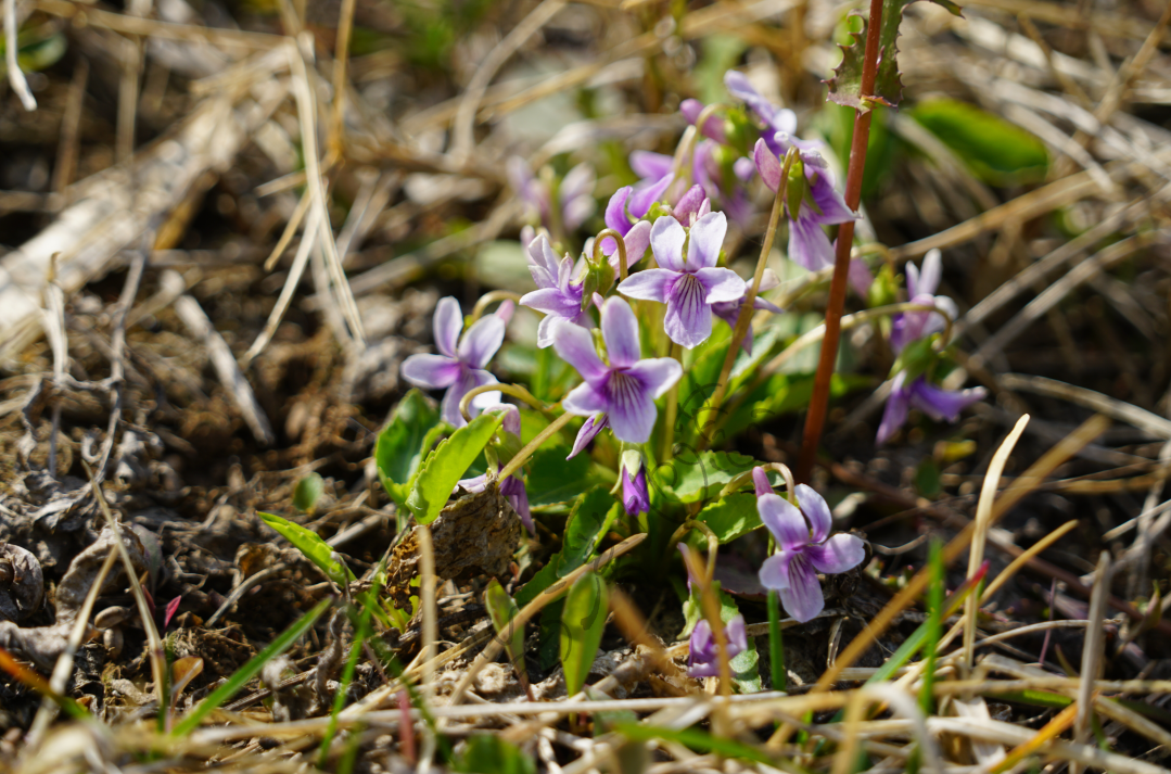 再来看看花的差别,既然叫它早开,早开堇菜的花期必然是会更早一点,但它们的花期都很长,能成早春一直开到暮春,属实是开花机器了,所以如果只要稍晚点,早开堇菜和紫花地丁是一起开放的。