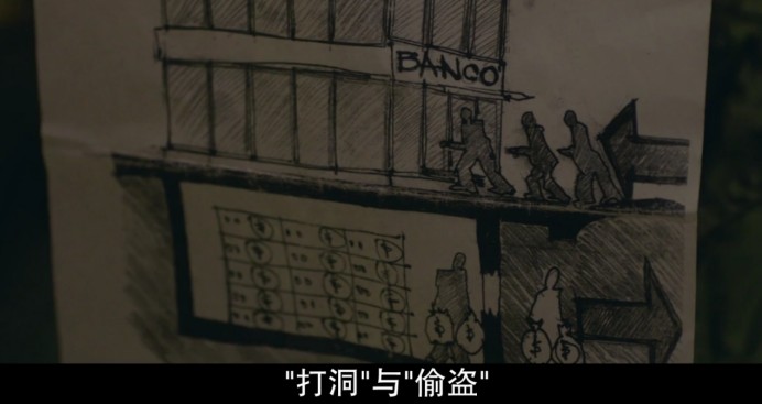 1、在银行正常营业时小白、金枪哥、医生以及偷哥四个人进去抢劫。此时银行为方便客户存取东西,大门是打开的,警报、运动感测器也不会打开,安全系统主要靠监控和保安