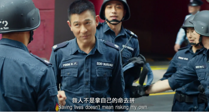 炸弹引爆后,我们还在为危机解除而感到庆幸,却从刘青云口中告诉我们,这样盖在身上根本没有防护效果。这又让我们认识到潘乘风是一个甘愿用自己的命救别人命的人。