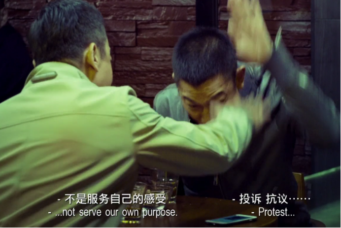 第二阶段:被警队正式拒绝之后,潘乘风变得冲动、易怒、不可理喻。他怪董卓文不帮他,怪女友不理解他,怪制度不合理。最后大闹表彰会,以辞职收场