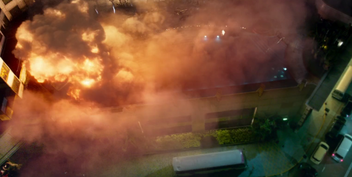 据导演邱礼涛介绍这种戏基本就是在地标建筑中取一些景,拍摄一些镜头,需要爆炸部分再去自己搞一个景拍一点,最后通过剪辑剪到一起,就像是拼图一样。