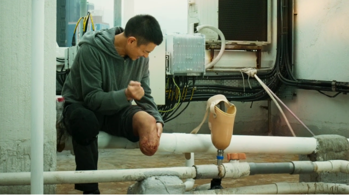 导演、动作导演、特效、演员等要提前想像假肢的镜头,根据假肢的位置来合理处理真腿摆放位置,到后期再把真腿修掉。