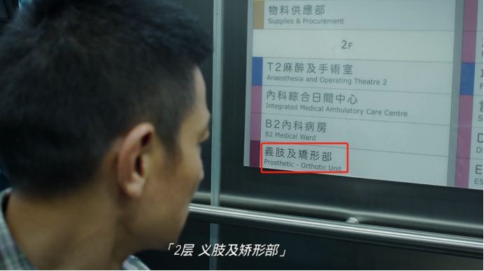 比如医院义肢部门。潘乘风失忆逃跑前,在电梯中看到义肢部门在2层,这样在逃跑途中去换上义肢并不突兀。如果没有显示这个信息,突然在半路上扔出一只假腿,观众会感觉很莫名其妙,一旦有了这种情绪就会特别影响观影体验。