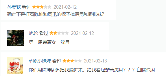 电影上映后,不少网友感觉被骗了,打着陈坤与周迅的幌子,实际是在捧屈楚萧跟沈月。