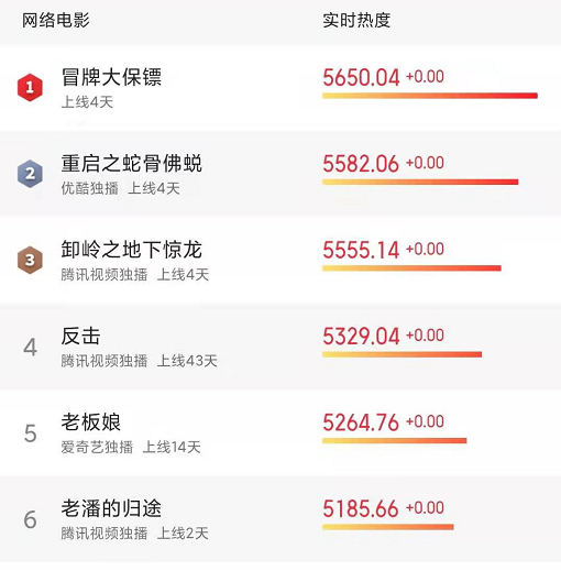 在当前网络电影中,上线4天的《冒牌大保镖》热度稳居第一。