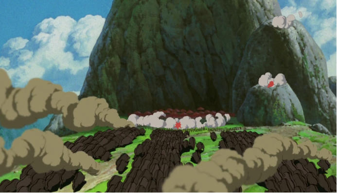 相对于其他电影而言,在《幽灵公主》中,人类的角色更像是反派,通过掌握的先进手段,火枪、火炮等来疯狂掠夺。不管这个行为合不合理,只要我强,我就说了算。