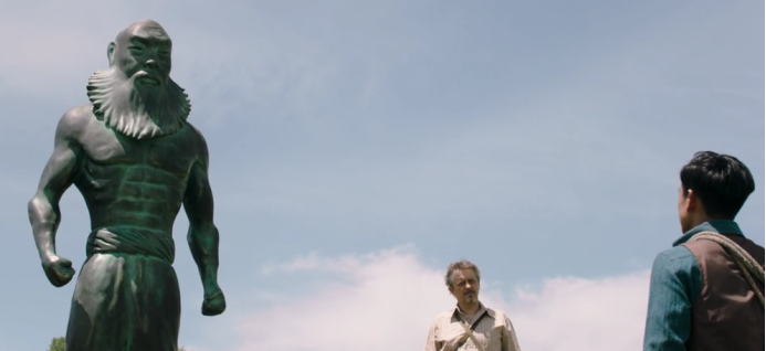 4、老亨得勒告诉李天然:朱潜龙给师傅离了雕像,并把李天然变成了狗跪在雕像前,全北京城的人都知道是李天然杀了师傅