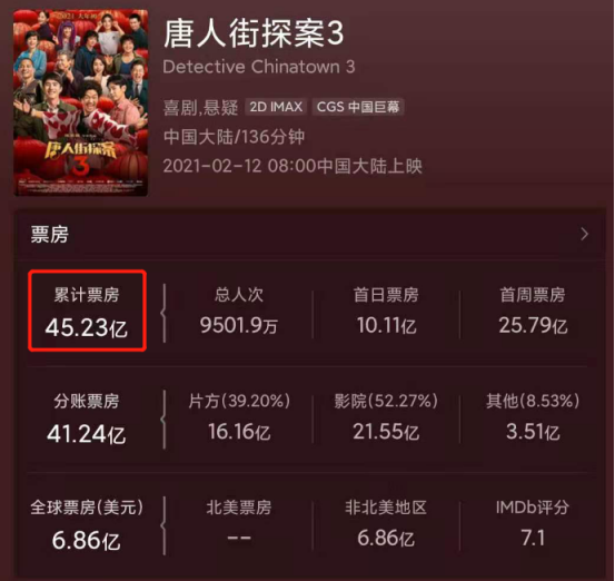 就拿《唐探3》来说,人物动机和电影剧情有很多不合理,甚至可以说矛盾的地方,但是票房却很高。