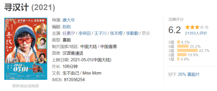 豆瓣两万多人,只给了6.2的评分,只算是勉强在及格线上。