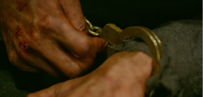 在准备迷幻剂的间歇时间,老张用回形针打开手铐,趁机逃脱。