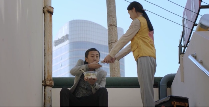 在一次送餐过程中,江雅丽偶然结识了在海边集装箱居住的男子——梁辉。
