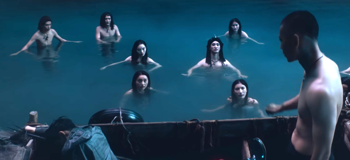 电影开头,克拉拉饰演的美人鱼梦美跟两位渔夫相遇。