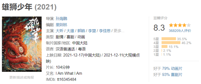 最终在一片骂声中,《雄狮少年》只收获了2.49亿的票房。