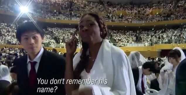 结婚,双方必须都是信徒,必须由教主指定结婚对象。不管你俩肤色是否一样,语言通不通,到了结婚当天才第一次见到对方。