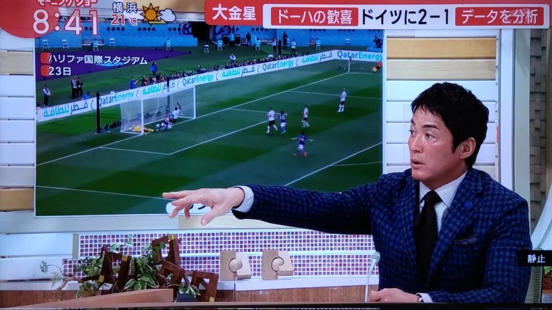 11月25日,他作为固定嘉宾出演朝日电视台的《羽鸟慎一晨间秀》。节目大聊日本队2-1踢赢德国队,其中说到“中国球迷和中国媒体非常肯定日本队的表现,称赞其是凭实力赢的。”