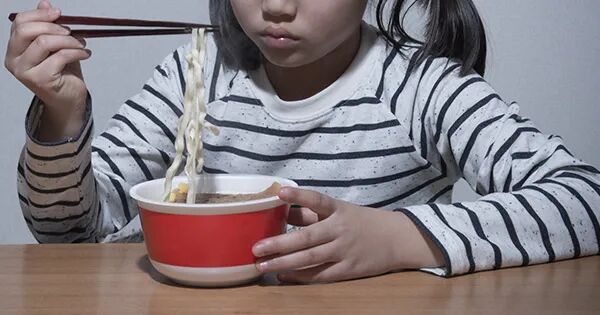 看记载贫困实态的记录片,常会看到这样的画面:孩子一天就吃一碗杯面。