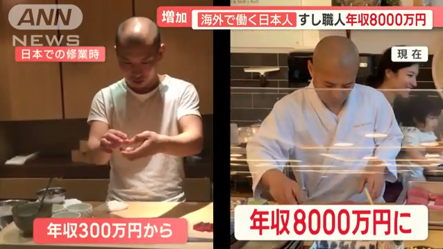 原本梦想着能实现年收入5000万日元就心满意足的他,轻松完成目标,现在年收入大约8000万。很快,他的第二家寿司店也要开业了。