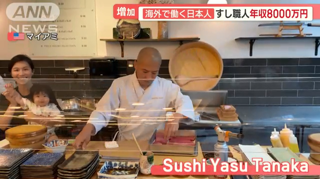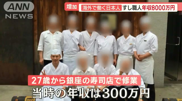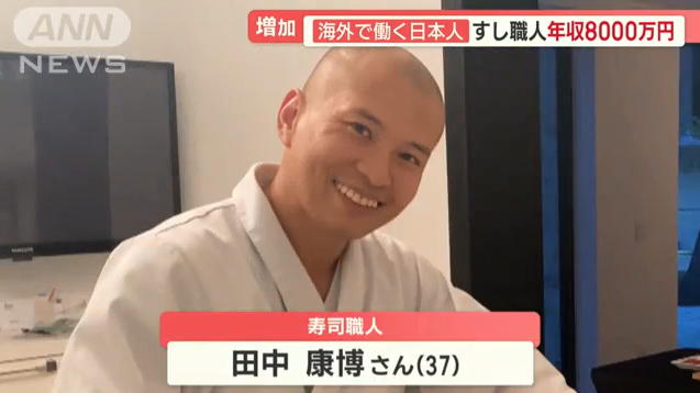 田中27岁时开始,在东京银座一家寿司店边学边干厨师。当时的年收入约300万日元。