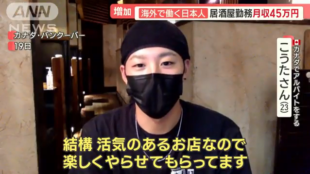 23岁的康太,也是通过“工作假期签证”去到温哥华,在当地一家日式居酒屋打工。