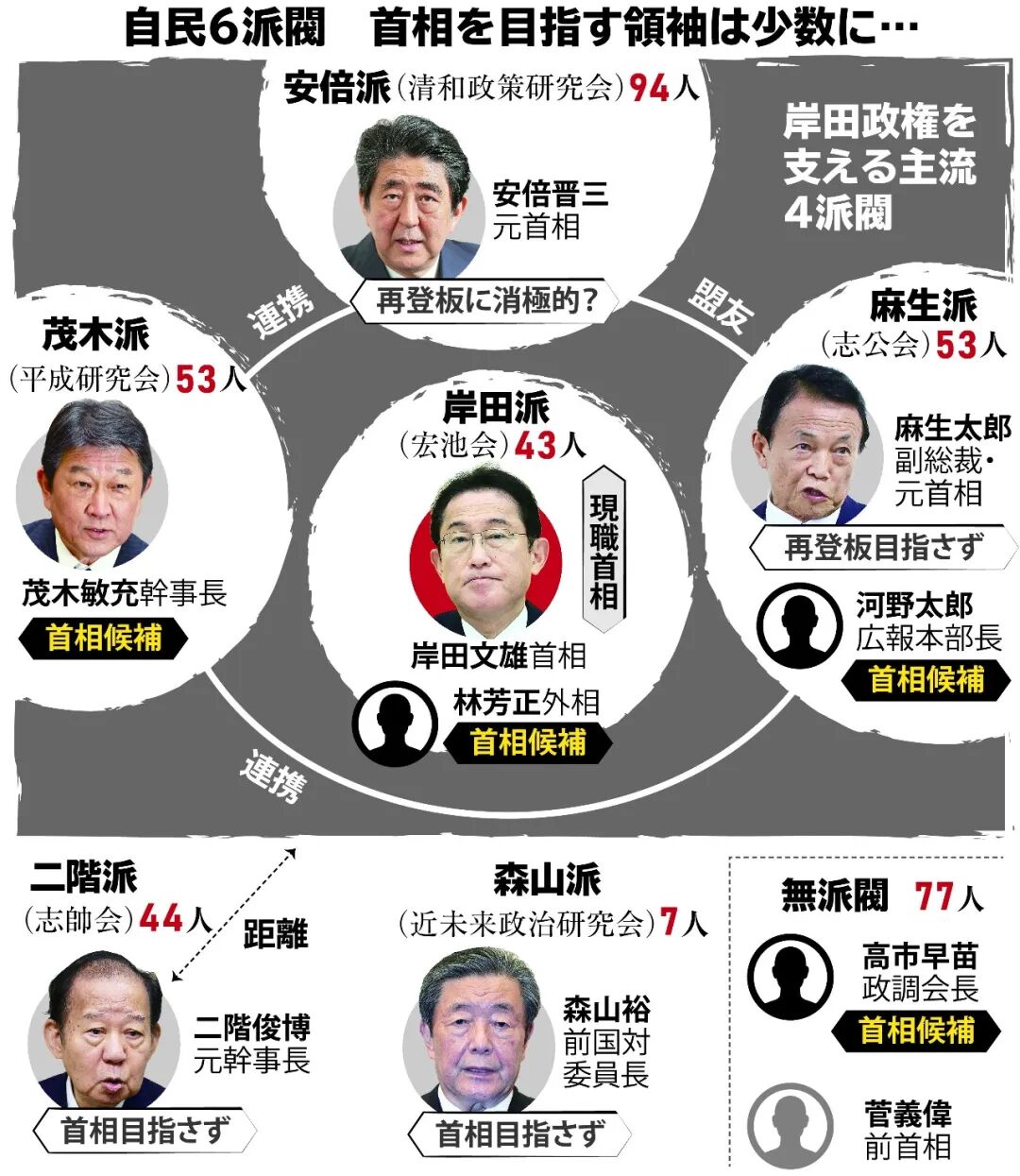 ▲岸田上台后,安倍遇刺前的自民党内势力图