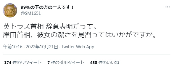 又因为网民们因为特拉斯辞职,而齐声大喊,让岸田学学人家也辞职,这现象成了另一桩大新闻……