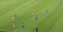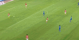 从图中看到,广州队球员刚开始是在后方从容不迫地倒脚,不断地吸引对方球员前来抢断并为进攻球员的跑位接球创造机会。一旦发现机会,就大胆往前传球。全场比赛,有太多类似的场面。