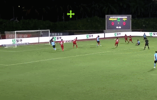 埋伏在禁区内的林良铭后点包抄成功,在对手门将扑球前把球送进河南队球门(下图)。