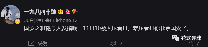 看不下去了!国安这表现引起了热议。记者丰臻在个人社交平台上写道:“国安之粗糙令人发指啊,11打10被人压着打。就压着打你北京国安了。 ”