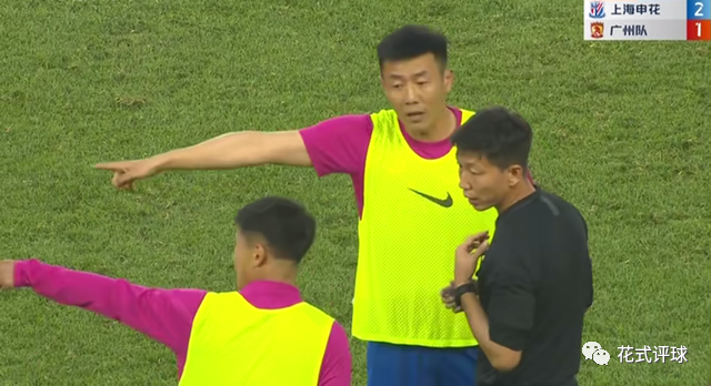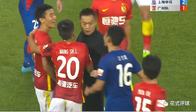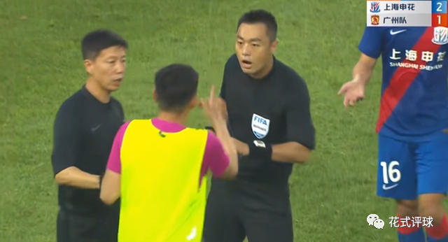 解说员是这么说的,秦升也是这么做的!无独有偶,前几轮也是申花在跟武汉三镇踢比赛的时候,秦升及时站出来“打抱不平”,结果坐在替补席上的他被主裁判走到跟前出示黄牌一张(下图)。