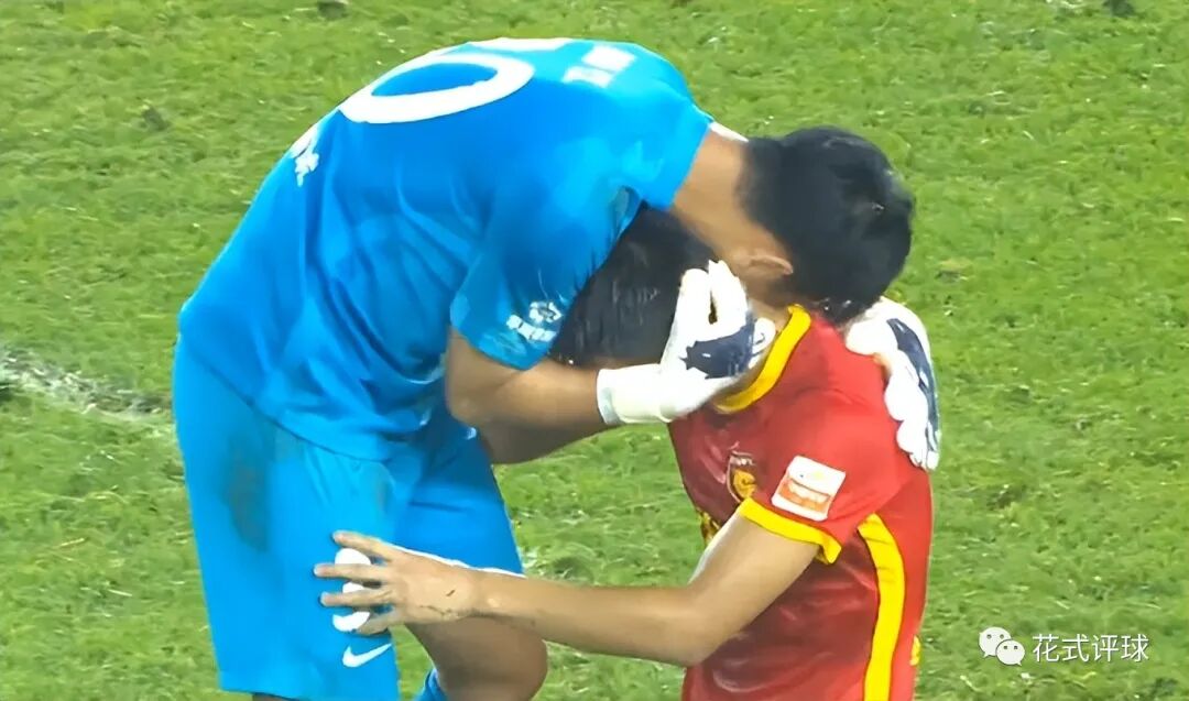 当主裁判吹响终场哨后,河北队门将鲍亚雄也控制不住的激动,紧抱张威的头表达感激之情。