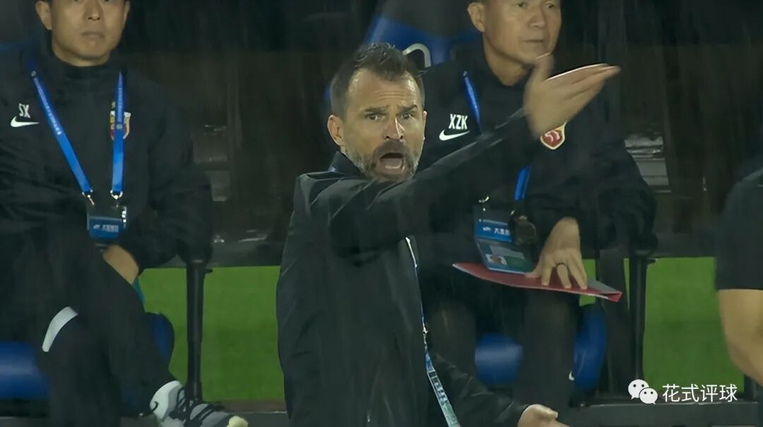 上港主帅莱科在比赛中冒雨积极指挥,但他执教的球队就是不进球,只能眼睁睁地看着对手把原本就夸张的比分被再次拉大。