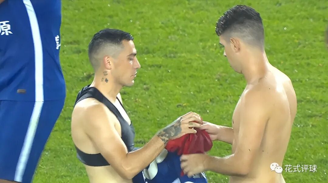 大家所关注的中超第一身价奥斯卡跟本赛季中超标王斯坦丘之间的对决,最后以奥斯卡尤胜一筹而告终。比赛结束后,两人走到一起互换球衣,也算是一种英雄惜英雄般的互相尊重。