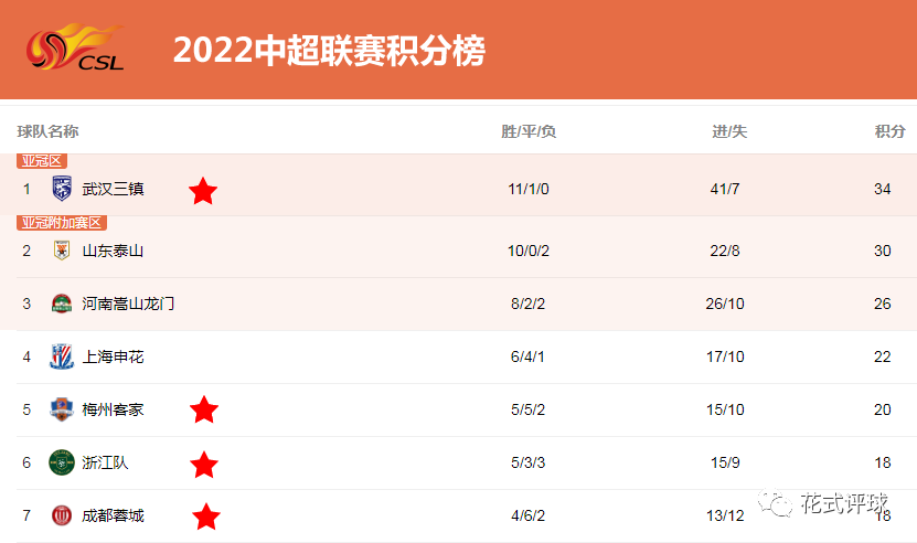 看(上图),最新一轮的中超比赛战罢,4支本赛季刚刚升上中超的球队集体霸占了积分榜前7的4个位置。除了武汉三镇以34分高居榜首,梅州客家也拿到20分排名第5,第6名是浙江队,第7名是成都蓉城。