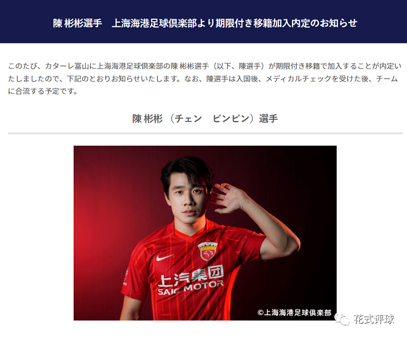 这个官宣有点姗姗来迟!因为早在14号,上港这边就已经官宣陈彬彬租借加盟富山胜利(下图)。双方俱乐部官宣间隔5天,球迷看得心急,或许这是因为J3联赛的官宣文化跟我们有所不同罢了。