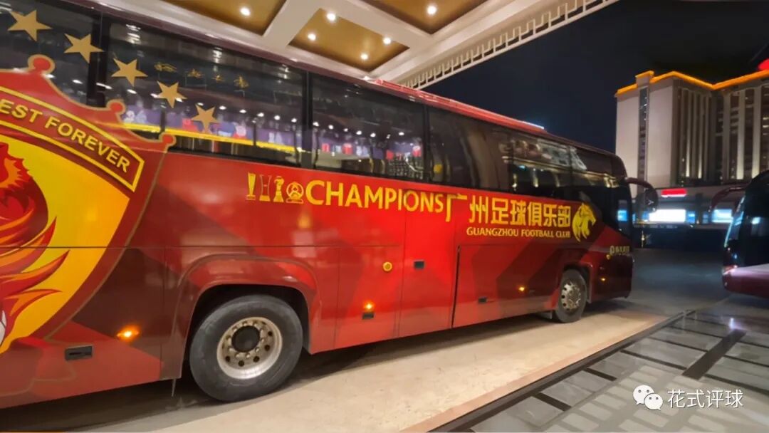 值得一提的是,前些天有传闻广州队大巴车上的俱乐部某些标志被抹去,但从开进赛区的球队大巴车来看,“广州足球俱乐部”字样和球队队徽完好无损,车的前门还印着“恒大集团”4个大字。