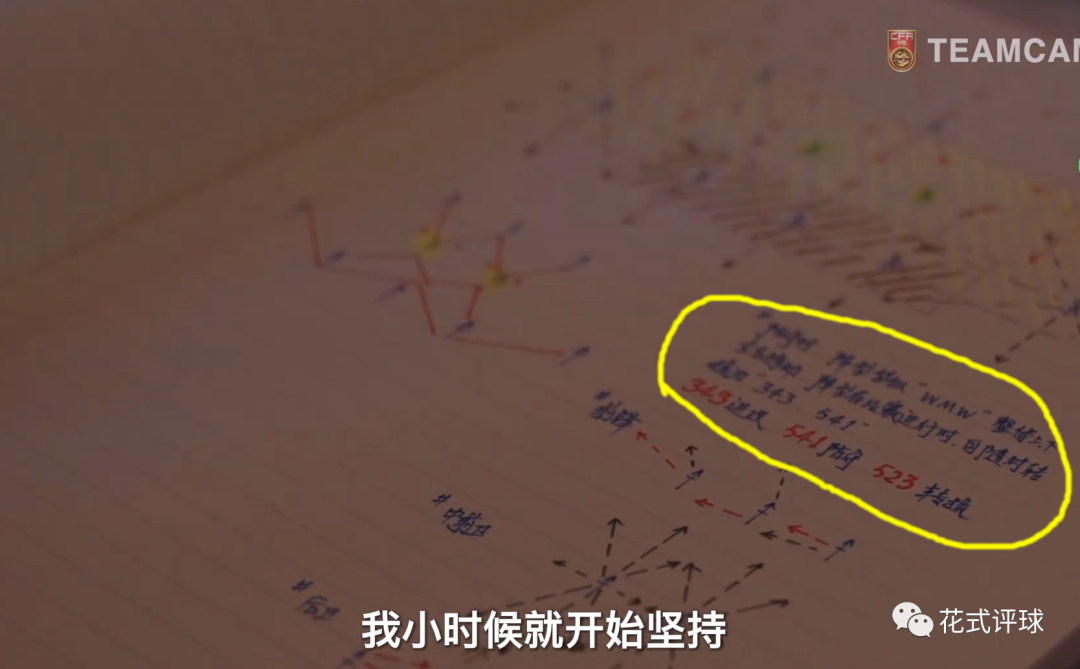 由于这本笔记是被随意翻了几页,具体国足练了啥没有拍到,但其中有一页(上图),很有可能就是国足对阵日本队时的预定战术演练。