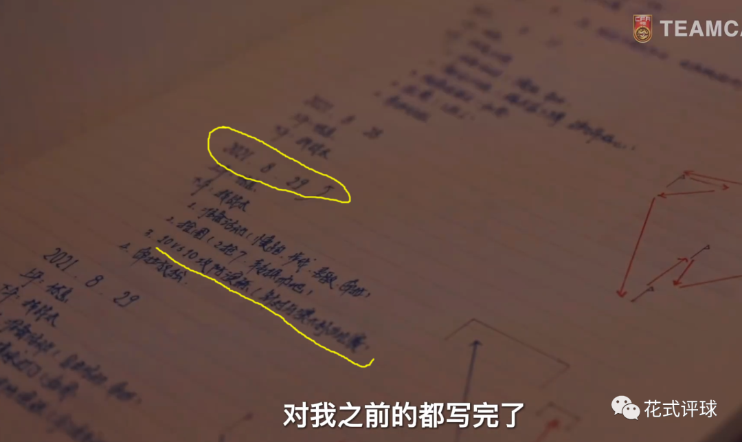 9月2日国足战澳大利亚队之前的训练中,张琳芃在8月29日的笔记中描述了国足的技战术训练内容(上图),其中第1项是做准备活动,第2项是抢圈(2抢7),第3项表示国足在练10对10的攻防演练,第4项应该是跑步放松。