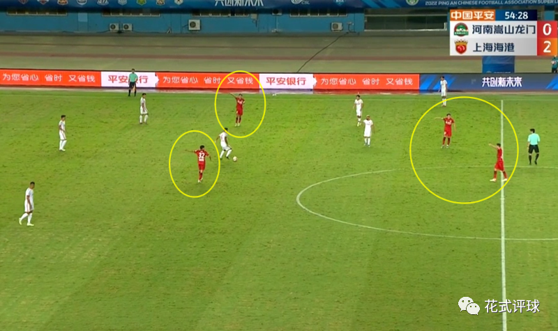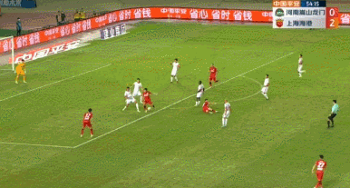 比赛进行到第54分钟,主队河南嵩山龙门发起进攻,黄紫昌在上港禁区内被蒋光太踢倒在地。此时裁判示意比赛继续进行,上港球员迫不及待地发动反击。