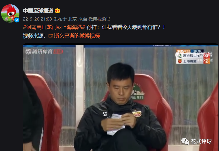 对于孙祥这个举动,“中国足球报道”官微在动态中调侃地写道(下图):“孙祥:让我看看今天裁判都有谁?!”不知道这话有没有让海港感到尴尬。