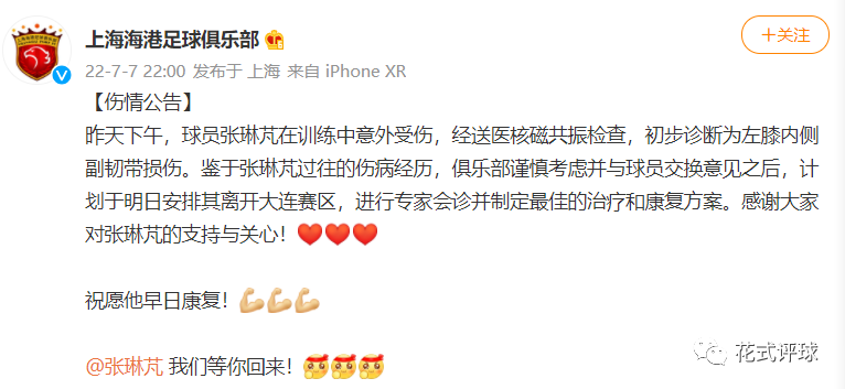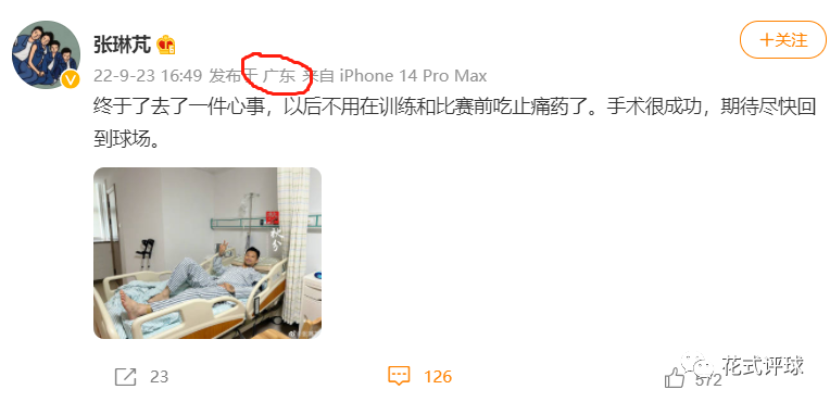 2022年9月23日最新消息显示(上图),张琳芃已经在广东完成了手术。为此他在个人社交平台上向球迷报平安,表示手术很成功,终于不用在训练和比赛之前吃止痛药了。