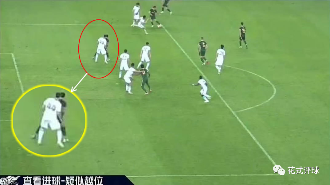这个判罚成为赛后热议的焦点。从(下图)的划线来看,阎相闯是否越位在毫厘之间,堪称体毛级越位。