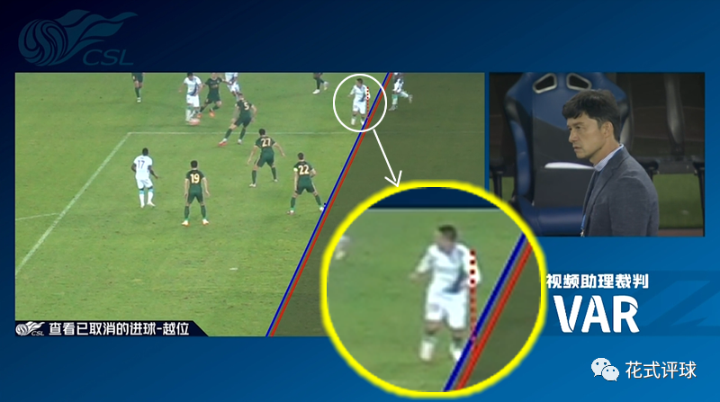 也就是说,如果按照规则,张玉宁在传球瞬间是处于越位的位置。蹊跷的是,这次更明显的越位角度,VAR视频助理裁判却没有划线,匆忙就认定国安的进球有效,令人感到不解。