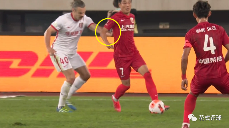 理查德这个犯规动作不大,武磊这个摔倒很聪明。本来进攻受阻,在被动中制造一粒前场任意球无疑就是最佳选择。