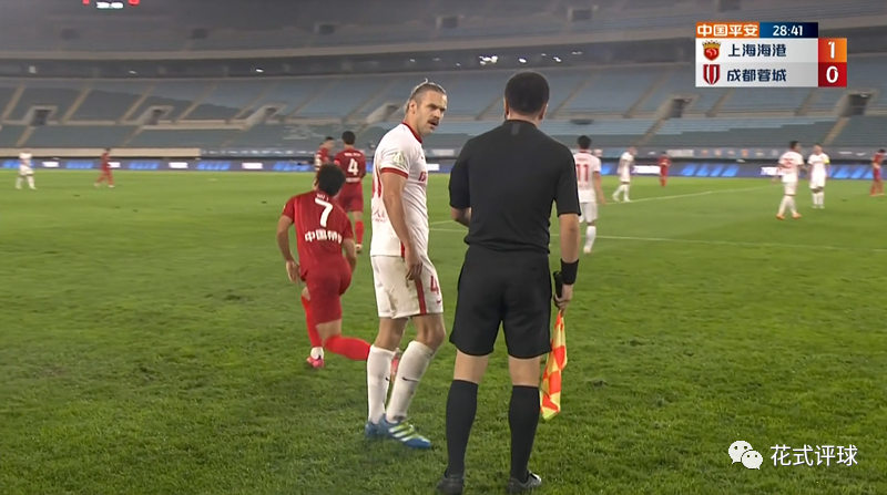 这个时间点发生了什么?原来武磊带球单刀突破,被成都蓉城外援理查德从禁区挤到了边线附近,随即摔倒在地(上图)。