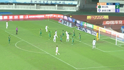 比赛的一丢丢变数发生在第73分钟,浙江队后卫岳鑫吃到第二张黄牌被红牌罚下,武汉三镇在多打1人的情况下,于第77分钟由马尔康倒钩破门(下图),扳回了一球。