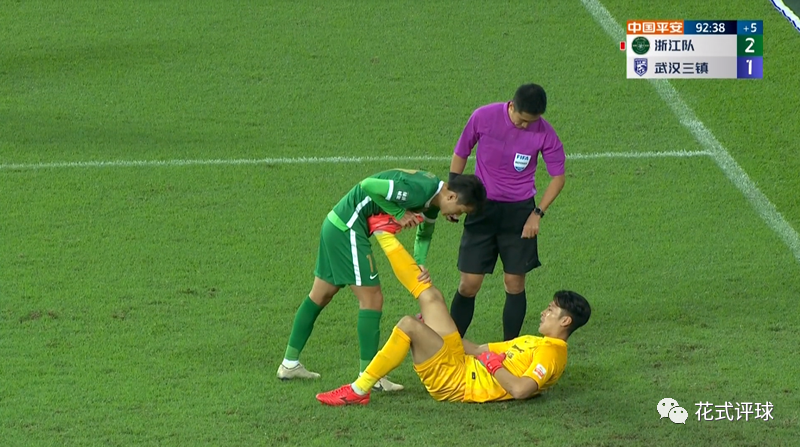 最令武汉三镇球员感到无奈的是,浙江队门将顾超竟然也抽筋了。顾超这次抽筋毫无征兆,本来是双方球员在禁区内拼抢倒地引起争执,前国门本来漫步在门前看热闹,突然就痛苦地倒在地上(下图) 。