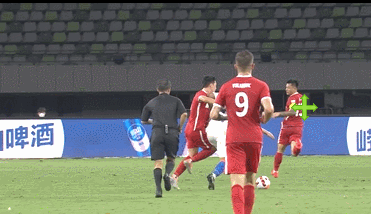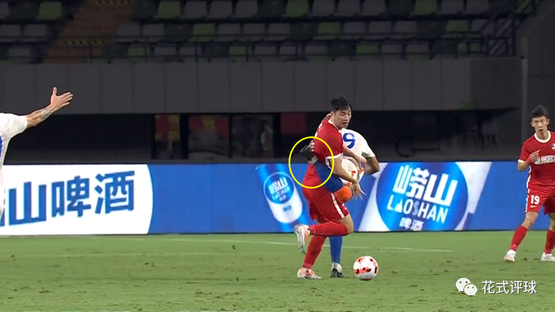 就在对阵梅州客家的比赛中,克雷桑差点因为一次报复性犯规而吃到红牌。这次犯规(下图),梅州客家球员的防守动作激起了克雷桑的怒火,争抢中摆起来后脚跟踢到对手的背部。