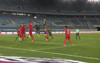 这还没完!第22轮上港对阵近期状态欠佳的长春亚泰,也用自己的乌龙助攻送给对手一个进球。谭龙被换下后,顶替上来的程长城很快就在一次任意球中在门前抢点,把球踢进了上海海港的球门(下图)。