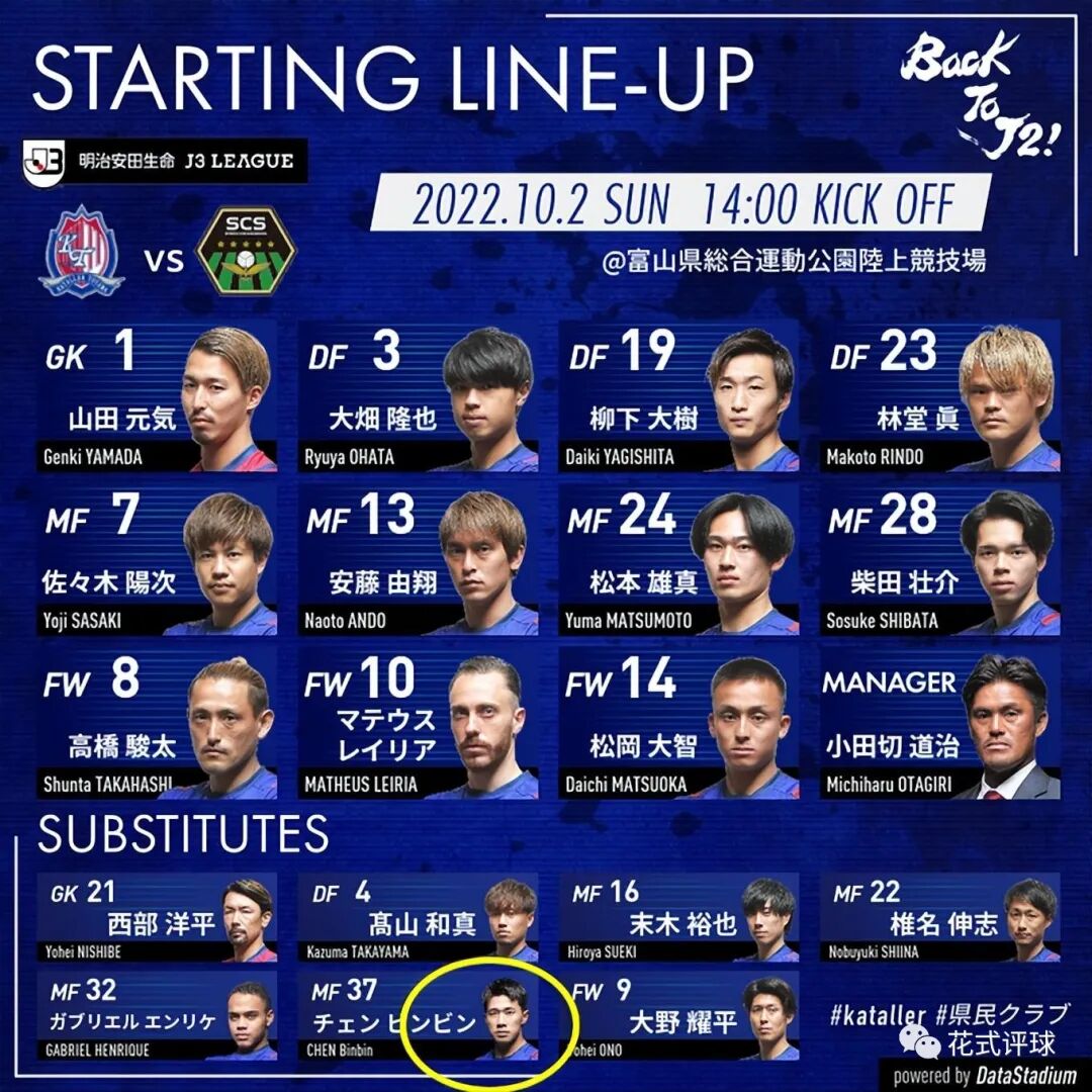 在最新一期的J3联赛中,效力于富山胜利队的陈彬彬再度无缘大名单(上图)。上一次他如下进入比赛大名单还是在10月2号(下图),这也是他加盟球队后唯一一次,只可惜没能登场上演首秀。