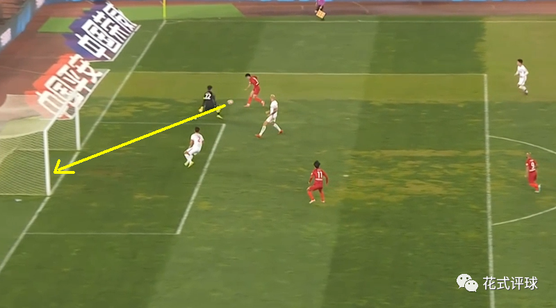 武磊的技术特点依然是一招鲜——快速启动,变向摆脱,猝不及防地射门。这点在本场比赛中体现得淋漓尽致。尤其是(下图)这脚射门,在门将和后卫中间的有限空间中穿进球门,让人防不胜防。